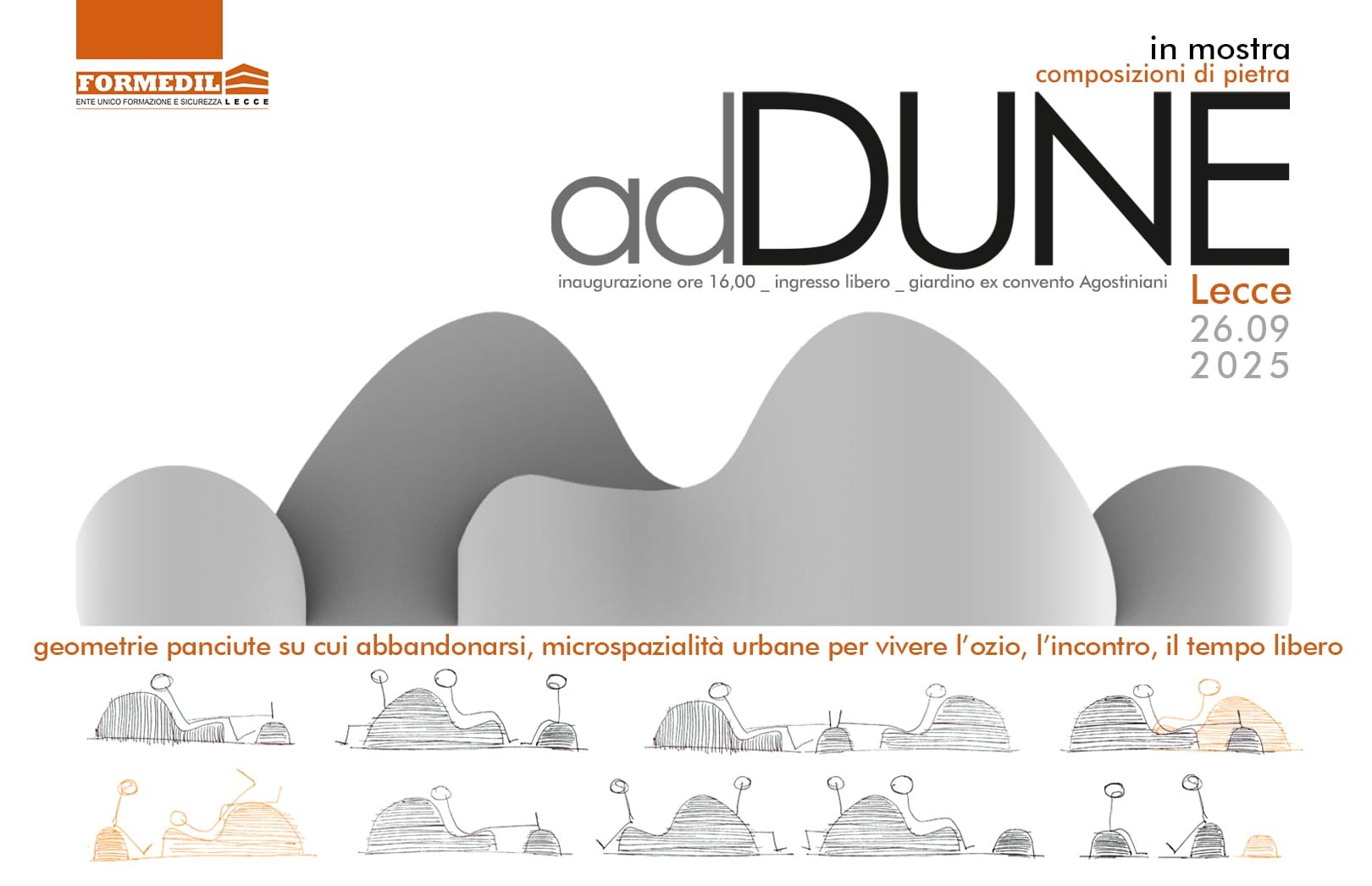 Inaugurazione di "adDUNE" Cos'è AdDUNE... ? uno sciogli lingua antico dalla pronuncia "esplosiva" o rappresenta elementi di pietra che  conservano la memoria? AdDUNE... la ricerca di un luogo o l'aspettativa di un incontro? A uno sguardo distratto potrebbe apparire un bizzarro formalismo, un gioco di parole composto dalla preposizione Ad (che indica verso o direzione) […]